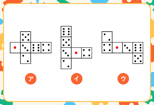 サイコロの展開図が3つあります。1つだけ、組み立てられないものがあります。それはどれでしょうか?