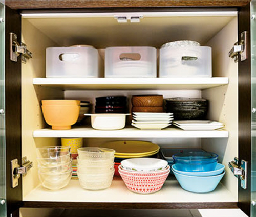 違う種類の器は2種類までしか重ねないことで取り出しやすく工夫。