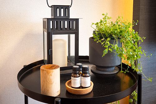 れみなんさんが大好きなフェルメールの絵画がプリントされた布で作成した、複製原画風のファブリックパネルをはじめ、小さな熊の置物などを配置。ライトも季節で変えるなど、さり気ないこだわりが随所に施されています。