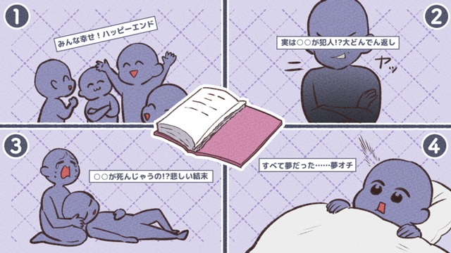 図書館で借りたミステリー小説。結末を楽しみにして読んでいたのに、最後のページが破れて無くなっていました。さて、破れたページにはどんな結末が待っていたと思いますか?