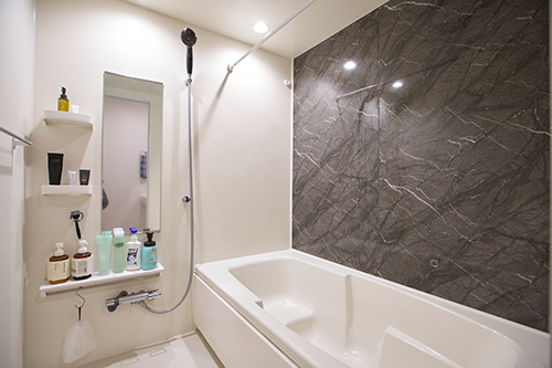 「バスルームも、シャワーヘッドをちょっといいものに替えて、ホテルをイメージして使っています(笑)。お風呂も大きくて、ここも大好きな空間ですね」(なべやんさん)