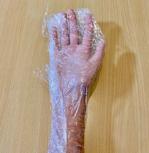 避難生活が長引くとき、集団生活では感染症に特に気を配る必要があります。炊き出しでおにぎりを握るときなど、衛生面が気になる場面ではビニール手袋が役立ちますが、数に限りがあることがほとんど。そんなときは、ラップを手に巻いて手袋代わりに使いましょう。トイレで用を足すときや、掃除、ゴミの処理など素手を使いたくないときにも重宝します。