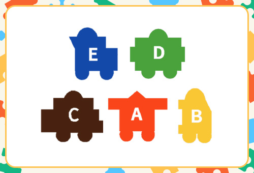 上の図形を横に並べた時、左から3番目に位置するのはどれでしょう?
