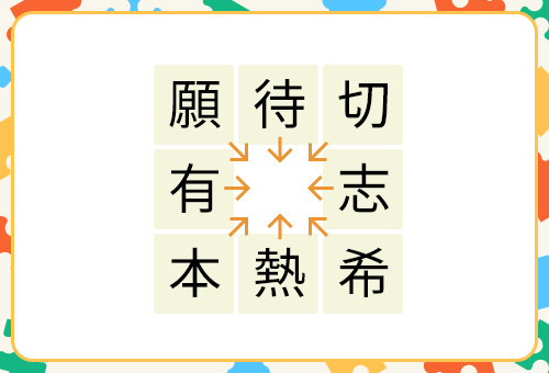 矢印の方向に読む二字熟語を作ります。共通して入る漢字一文字は何でしょう?