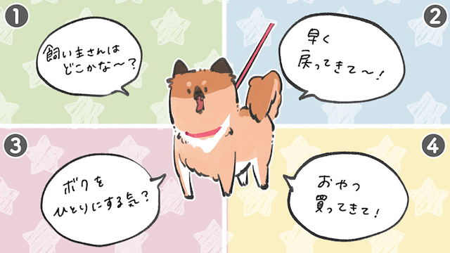 コンビニの前で電柱につながれた犬がワンワンと吠えています。飼い主は中で買い物をしている様子。その犬は飼い主に向かって何と言っていると思いますか?直感で選んでみてください。