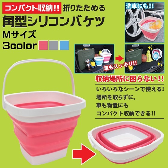 しまう場所に困らない優秀バケツ!角型折りたたみシリコンバケツ