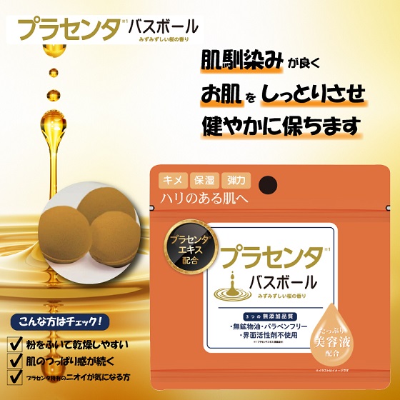 【毎日のバスタイムで潤いを】美容液配合バスボール プラセンタ 5個セット