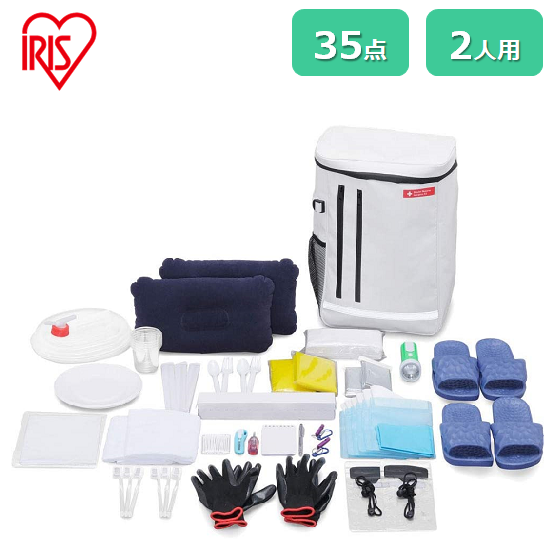 防災リュック2個付!AM/FMラジオ・LEDライト、ソーラー充電など20機能搭載したマルチレスキューライトを含む61点セットです。