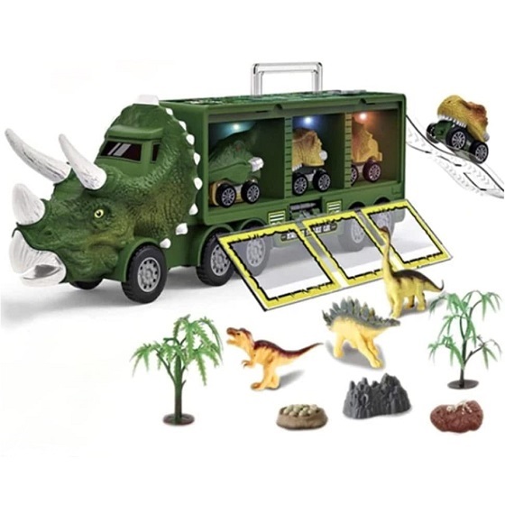 恐竜バスがミニ恐竜の収納カーにもなる!
