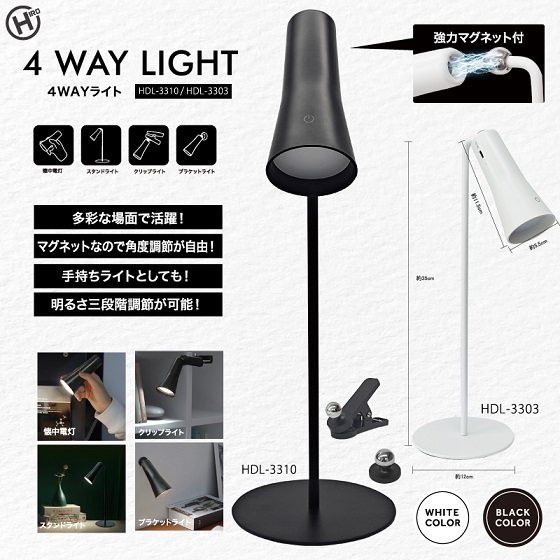 【マグネット装着で角度調節自由自在】マグネット式4WAYライト