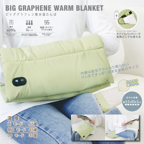 【モバイルバッテリーを繋げてあったか】シルキータッチグラフェン無水湯たんぽ
