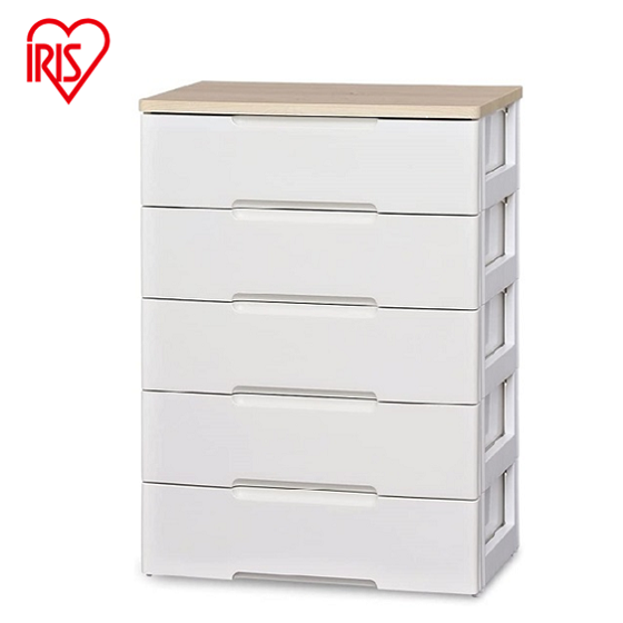【5段】リビングの収納にピッタリの木天板付きチェストです。