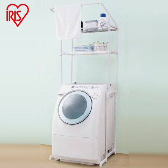 洗濯機まわりの整理に、伸縮可能なランドリーラック