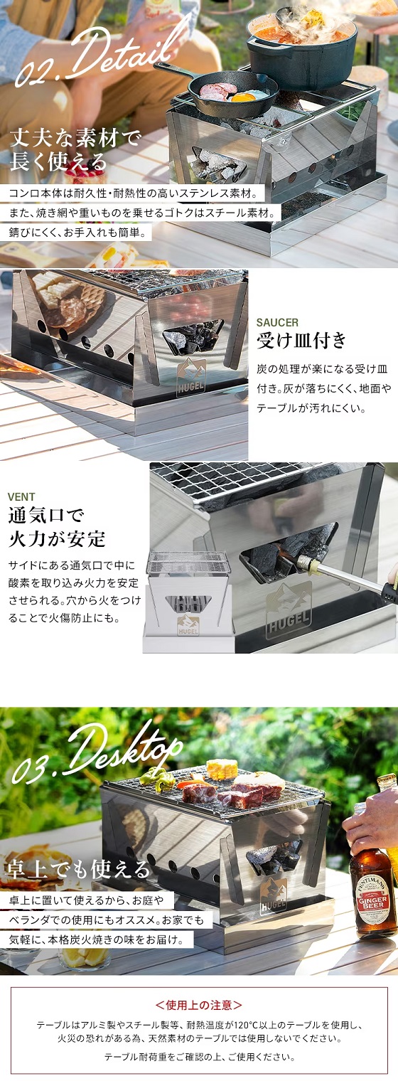 (※1:使用するテーブル等の条件:耐熱温度が120℃以下のテーブルや天然素材のテーブルの上では使用できません。テーブルの耐荷重をご確認のうえご使用下さい。)