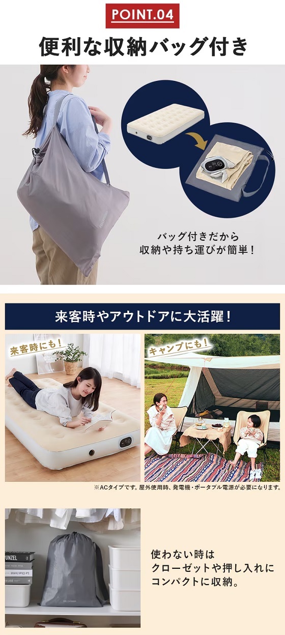 アウトドアや車中泊、災害時の避難用品として、幅広くご使用いただけます。