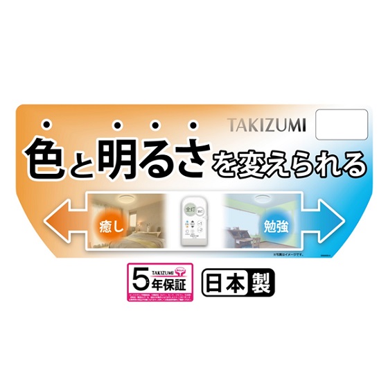 【日本製 5年保証】調光調色タイプ TAKIZUMI シーリングライト