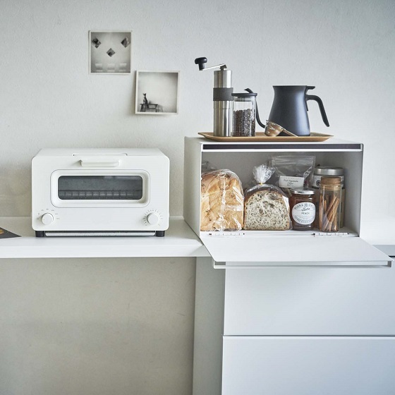 ・キッチンカウンターなどで雑然としがちなパンやお菓子、調味料などを隠しながらも美しく収納。