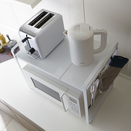 [tower]シンプルで使いやすい伸縮可能な電子レンジ収納ラック。大型レンジも収納可!
