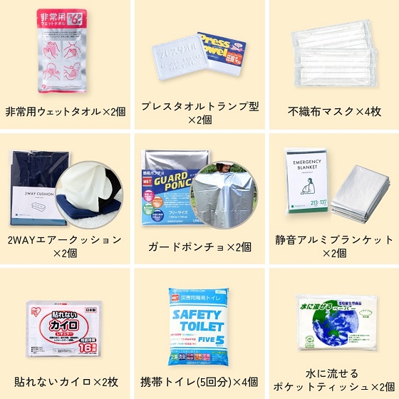 携帯トイレ20回分やドライシャンプーなど、衛生用品が充実!防災グッズを買うなら最低限備えたい商品をセットにしました。