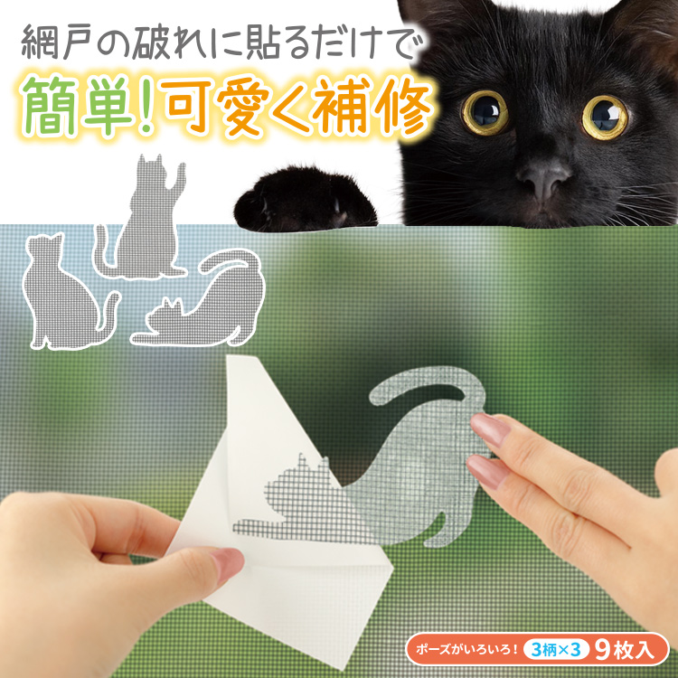 ■網戸の穴や破れを貼るだけで簡単に補修ができるニャンコの可愛い補修シール