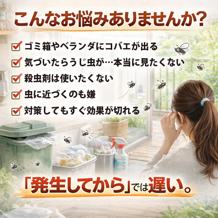 ■コバエやハエ、蛆虫が発生する前の予防に最適です。