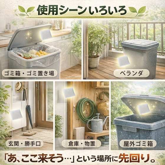 ■不快害虫の寄ってほしくない所に置いておくだけなので手を汚しにくく簡単です。