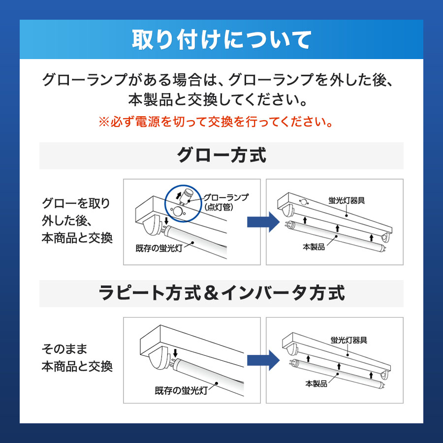 家電 照明・デジタル家電 ショッピング LED直管ランプ10形(昼光色) 色 選択された色:昼光色 タイプ 10形15形16形20形30形40形 送料無料 ¥2,680(税込) 参考価格 ¥2,880 獲得予定ポイント26 pt ※ポイント・クーポン未利用時の獲得予定ポイントを表示しています。 ポイントご利用ガイドはこちら カートに入れる お気に入りを解除しますか? 点灯方式に関係なく、そのまま取付するだけ 商品説明 LEDランプの6つのメリット ・消費電力が蛍光灯と比べ少なく経済的 ・蛍光灯よりはるかに長寿命! 交換の手間や買い替え頻度が少なくてすみます! ・水銀など含まれていないので、環境に優しい ・赤外線・紫外線の放出が少ないため、虫がよってこず、 壁紙や家具などの日焼け防止にも効果的 ・ガラスではないため、振動・衝撃に強い ・廃棄処理も簡単で、不燃ごみでの廃棄が可能 商品詳細 商品サイズ 幅×奥行×高さ(cm) 33.0*φ2.85 商品重量(kg) 0.085 消費電力 6W 全光束 720lm ランプ種類 LED直管ランプ 単体梱包サイズ 幅×奥行×高さ(cm) 40*40*370mm 単体梱包重量(kg) 0.125 型番 EDLTL10LED-28N メーカー ECO DEVICE(エコデバイス) この商品に関するお問い合わせ 【ruum問い合わせ先】 こちらから問い合わせください ※回答に2〜3日かかる場合がございます。 LED直管ランプ10形(昼光色) 送料無料 ¥2,680(税込) 参考価格 ¥2,880 カートに入れる 口コミを投稿 口コミを投稿するにはログインが必要です。 Javascriptを有効にしてください。 この商品に寄せられた口コミはまだありません。